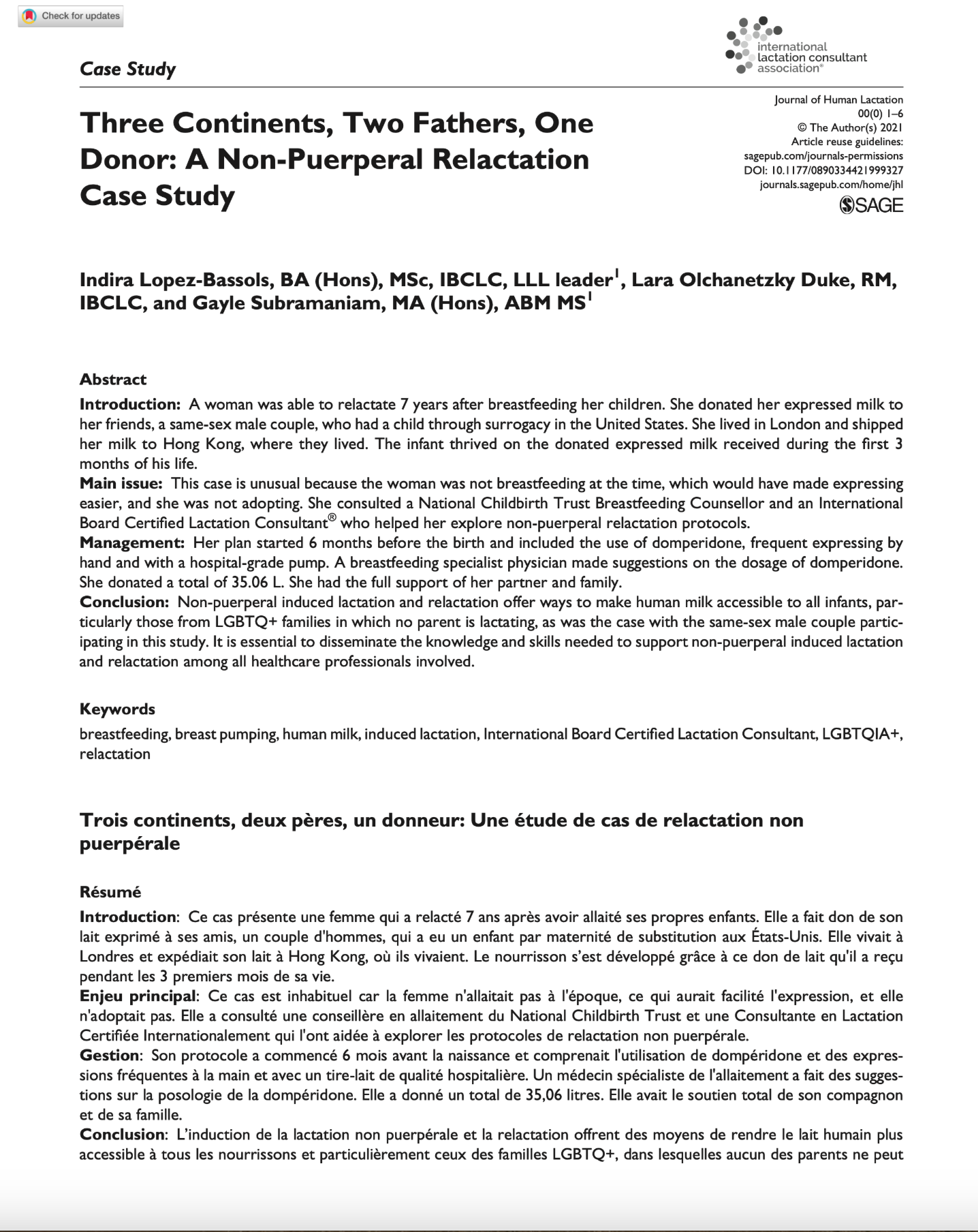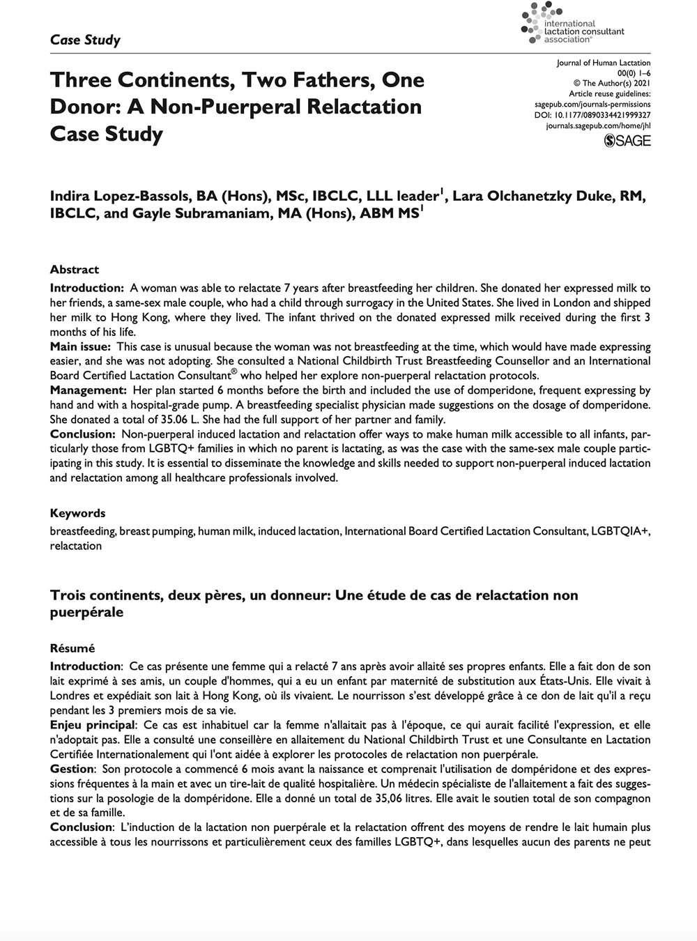 Three Continents, Two Fathers, One Donor: A Non-puerperal Relactation Case Study